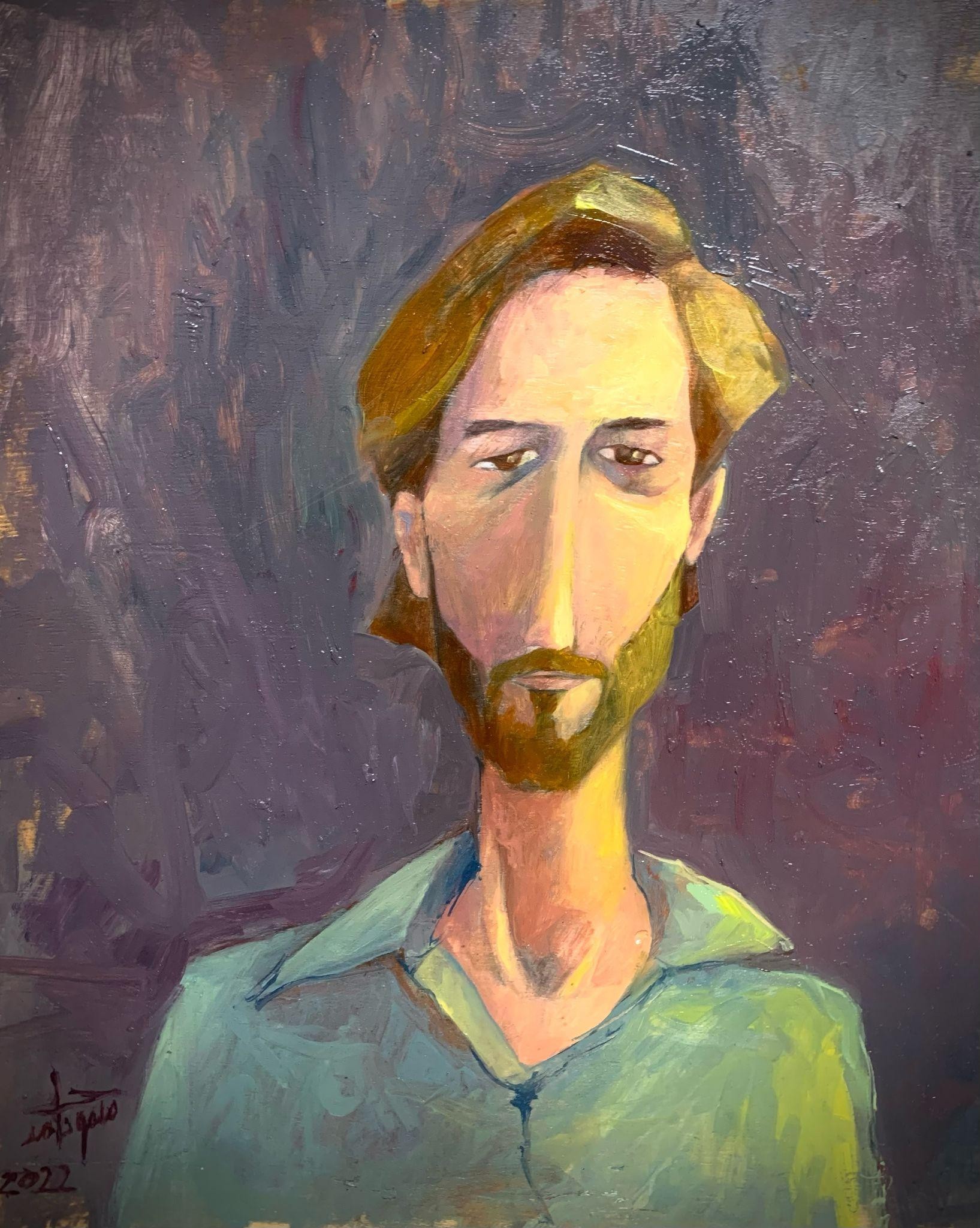 Self-Portrait, 21.7 × 17.7 in, oil on wood, 2022